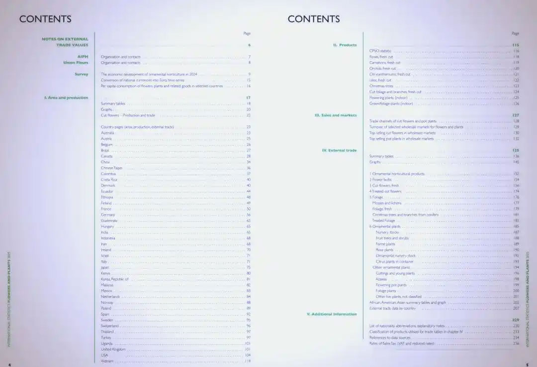 《2025国际花卉统计年报》是国际园艺生产者协会(AIPH)与国际花卉贸易联合会(Union Fleurs)联合发布的。这一期为第73期,详细报告了全球范围内的40多个国家和地区的花卉生产与贸易现状。这个合作项目致力于为全球园艺行业提供最新的市场趋势和全面的数据支持。
